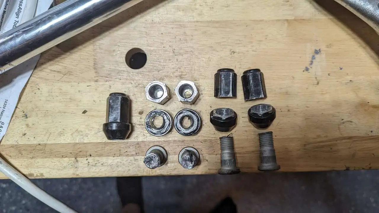 So, I ordered in four new wheels and tires from TireRack. The wheels came with aluminum lug nuts. I've never used aluminum lug nuts before but thought, hey, if TireRack sent them, they must be good to go right? Pfft.