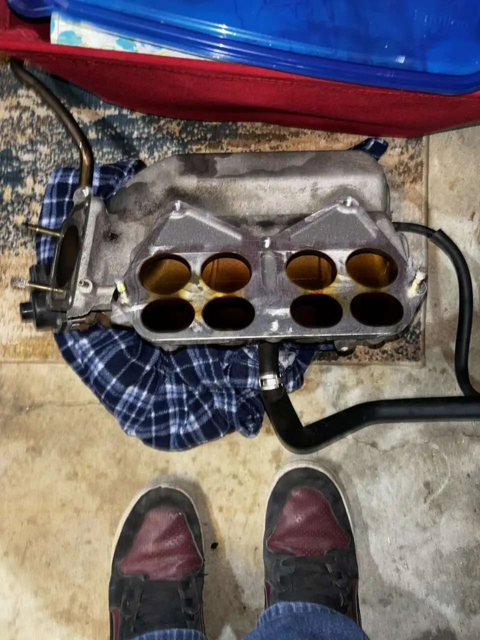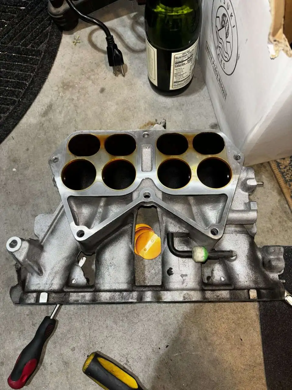 got some stuff done tonight, mounted turbo and deleted vtcs and vics! i’m going to combine the chambers in the intake manifold, it’ll be a long weekend but hopefully it’ll be boosted by the end of it!