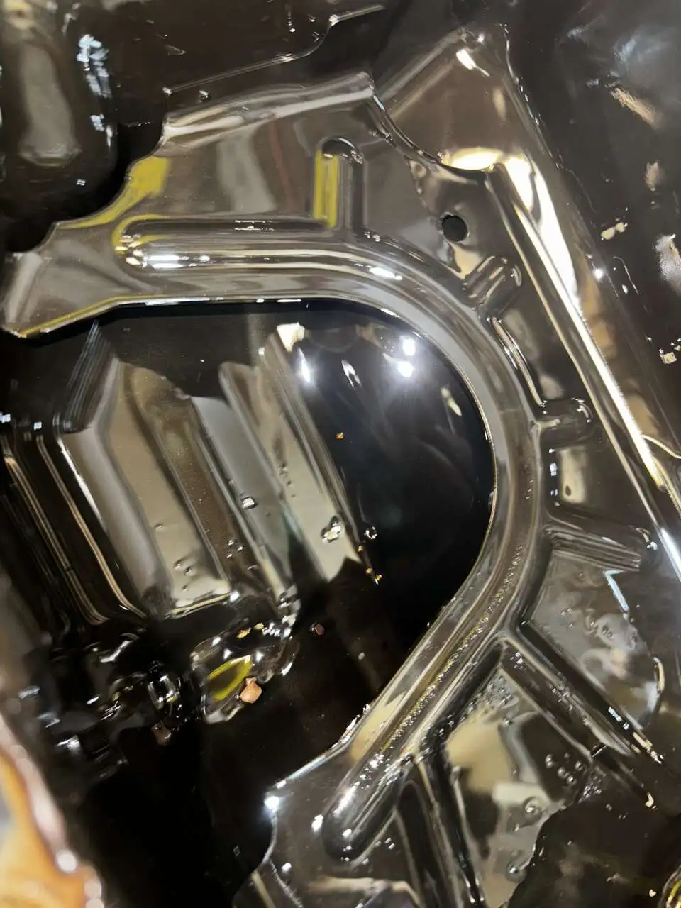 metal shavings in oil pan, spun rod bearing or about to spin. it’s not magnetic.