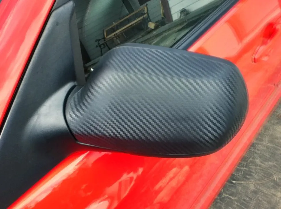 take a pic of the whole car, gives a better view of the application as a whole. something to consider; b-pillar wrap. similiar to the rx-8 cf-look pillar appliques. a nice application like the one you've already done on the mirror lends to the true cf look. there are a lot of halfassed vinyl jobs out there that just look like stickers. done right and as long as you dont go overboard, will look pleasing. lets face it, unless youre replacing the entire body in cf, real cf trim is for looks anyway. might as well save a lot of money with properly done vinyl