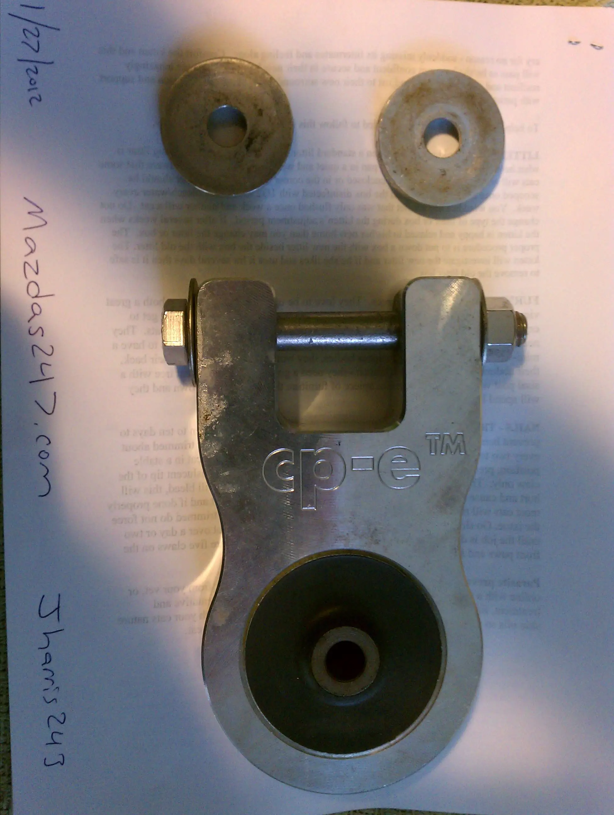 I used this mount for a few months then swapped out for the stiffer TRZ rear mount. I sent it back to CP-E and had a new 60A duro bushing put in so it is like new.