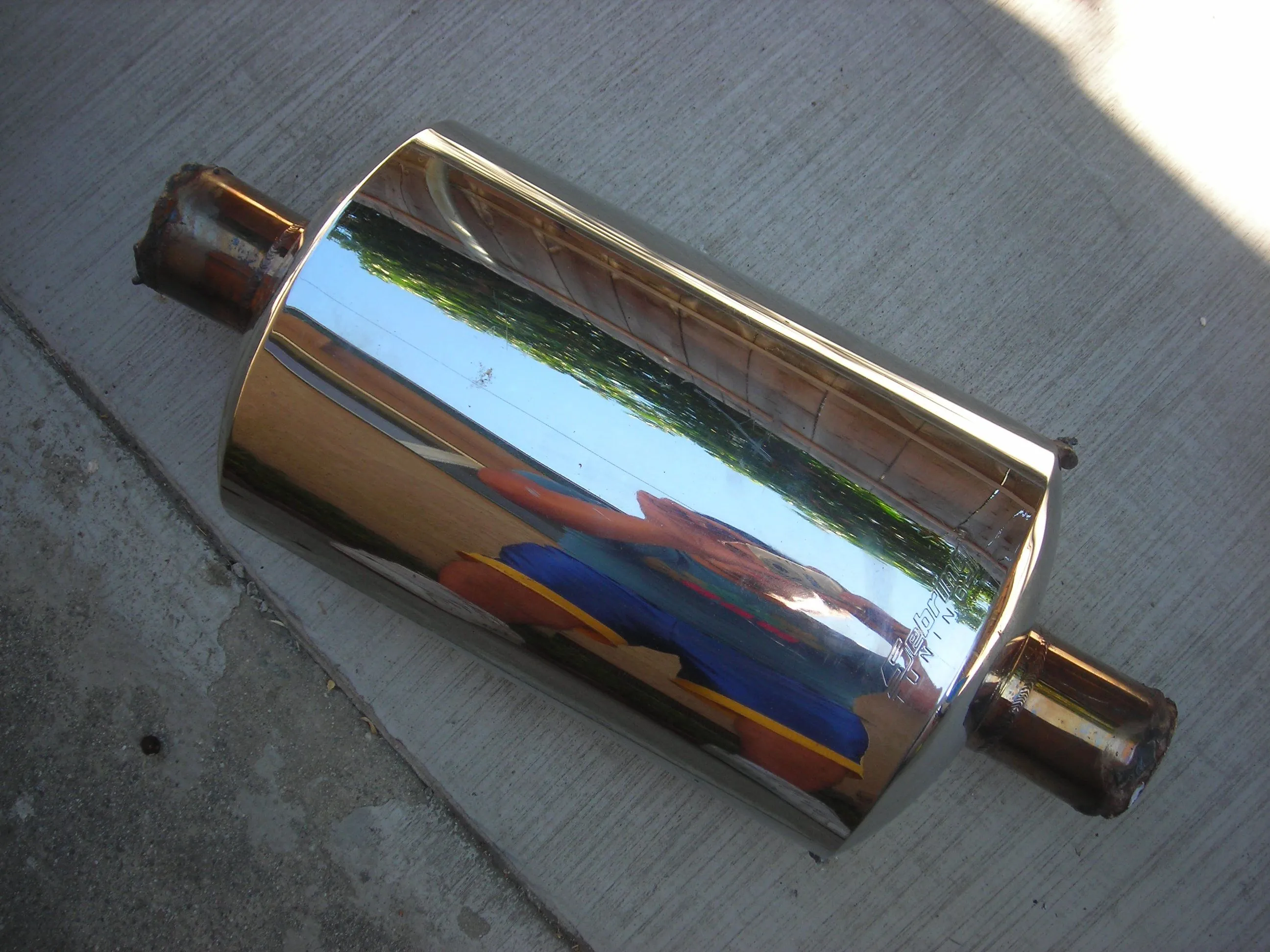 if you're going to do anything to your exhaust then get a full catback or do nothing... welding on an obnoxious muffler (fartcan) is ricey and retarded, not to mention won't do anything to enhance the performance of your vehicle