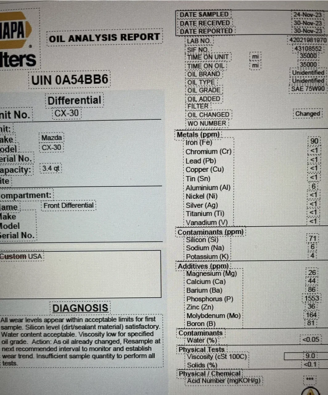 Silica contamination confirms imperfect seals in differentials. Mazda should have a diffs change intervals in their owners manual......
