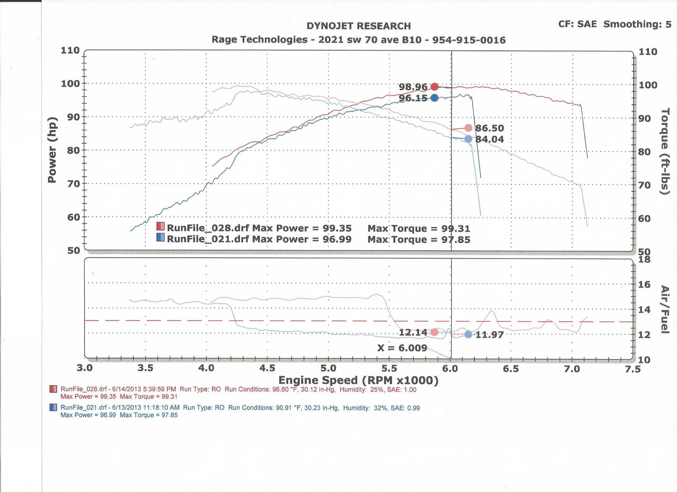 Dyno sheet on June 14th 2013 (same day of the reflash) shows Numbers 1- with some mods (headers exhaust ,intake) before reflash : 96.99 HP and 97.85 Torque
