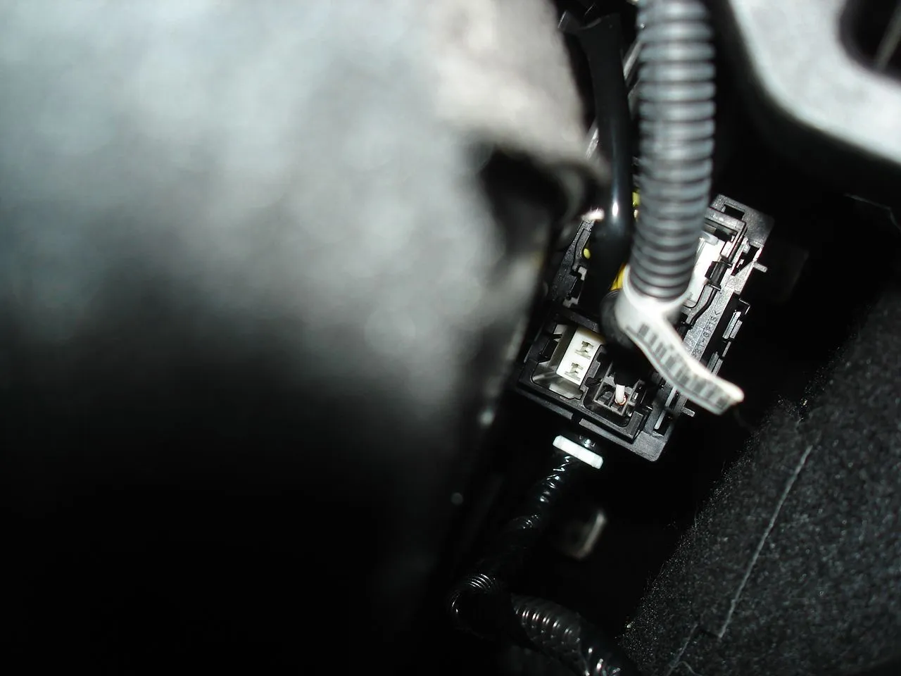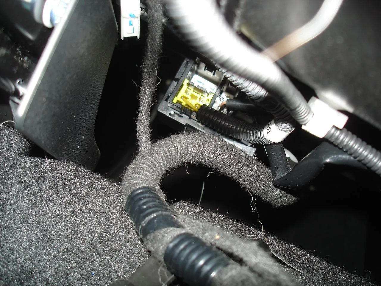 1st pic is under the drivers seat from behind, 2nd pic is passenger seat from behind. I wish I could get better pics but I couldn't get the connector loose from the seat to get it lower to take better pic's.