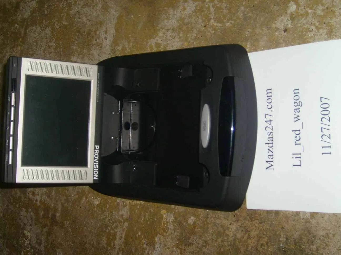 just sent off on the ps1. now up is a 6.5" flip-down screen. it is in good condition since i had it in my old car and didn't use it very often.