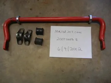 SOLD For sale: used approx. 30K miles Hotchkis adjustable rear sway bar for 2007 Mazdspeed3. Sold car and put OEM back on. Comes with 2 rubber bushings and 2 mounting brackets. Red paint is chipped around end link holes. $100 plus shipping OBO. DSCN2548.webpDSCN2547.webpDSCN2545.webpDSCN2546.webp