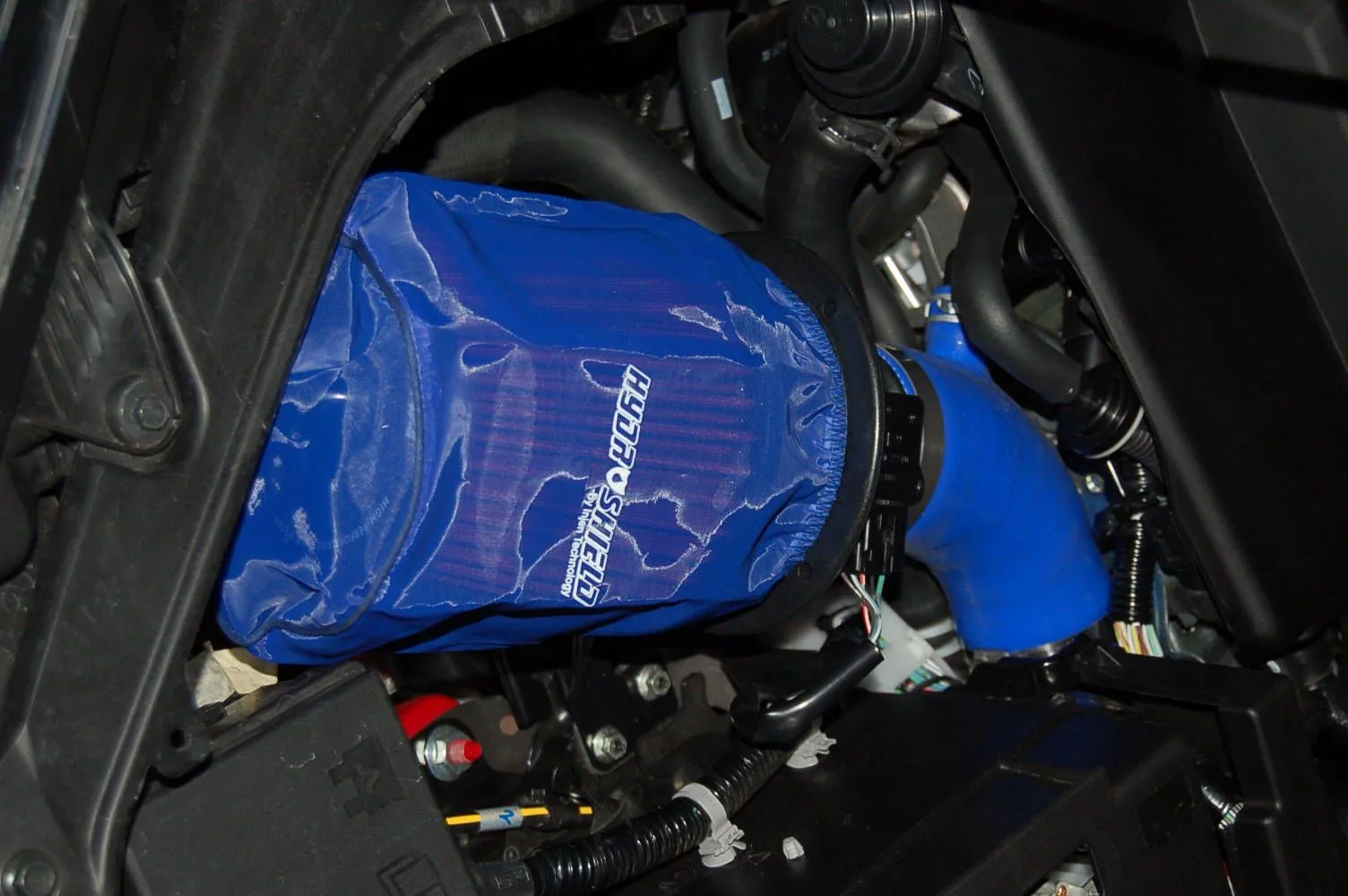 Tonight I replaced the Blue Oiled Filter with a Fujita F5 Dry Filter and added an Injen Water Sock. And they all fit. The Water Sock is a little big, but it does the job. Its raining now, and I feel a little more confident in not getting the filter totally soaked with rain water.