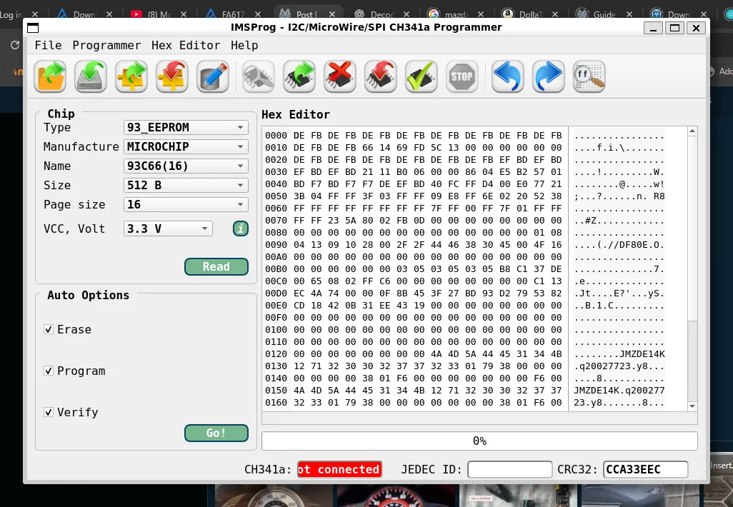 3. Hit write/program, make sure you verify the IC afterwards to ensure that the EEPROM has been sucessfully flashed.