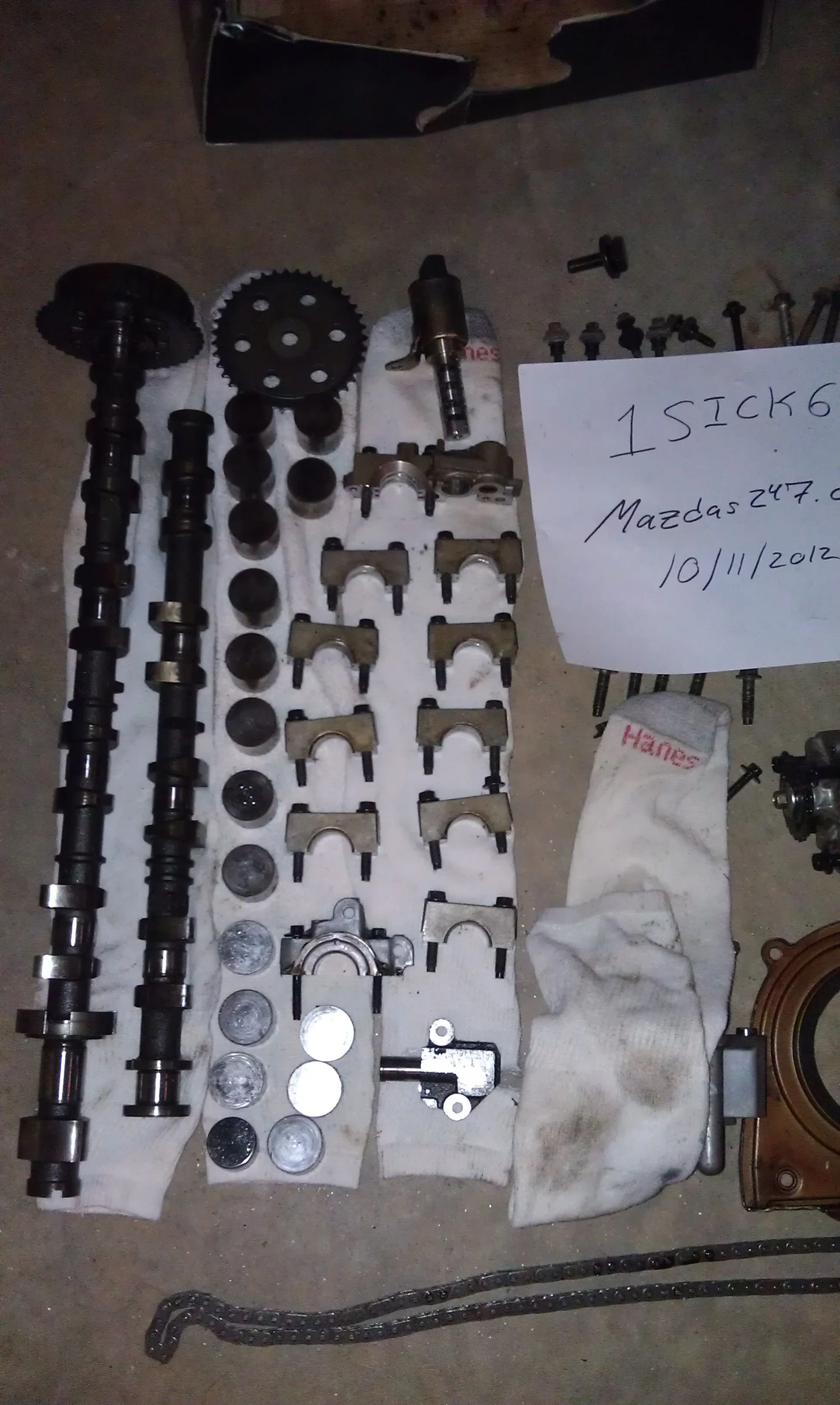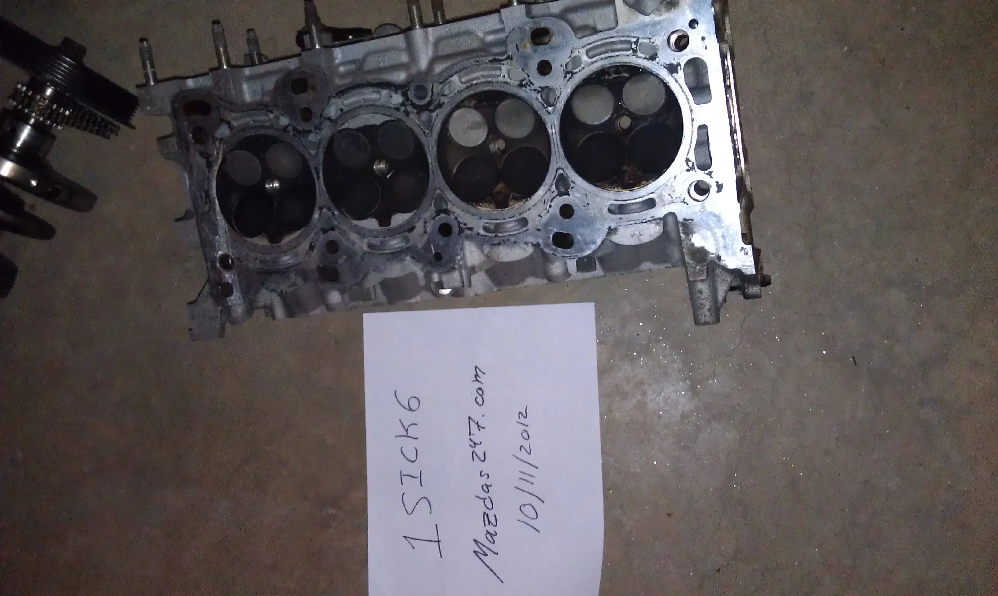 After the death of my stock engine and the ridiculous amount of money Mazda charged me for a new assembly, I decided it was best to reclaim the old assembly to salvage whatever useful parts there may still be. Mazda didn't care for stripping the blown engine down, so I now have the following off a 2006 Mazdaspeed6 2.3L DISI MZR Turbo: