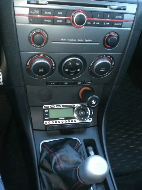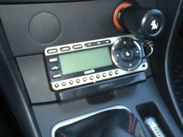 This won't be a how-to, just showing where I mounted the radio I purchased this week after my Sirius One died. I'm not a smoker so I was able to remove the ashtray and cut the faceplate a little bit so I could fit the radio flush with the center console. The result is a clean looking install with all wires entirely hidden (with the exception of power, more on that in a minute). If nothing else, this little project was a good excuse to buy a new dremel.
