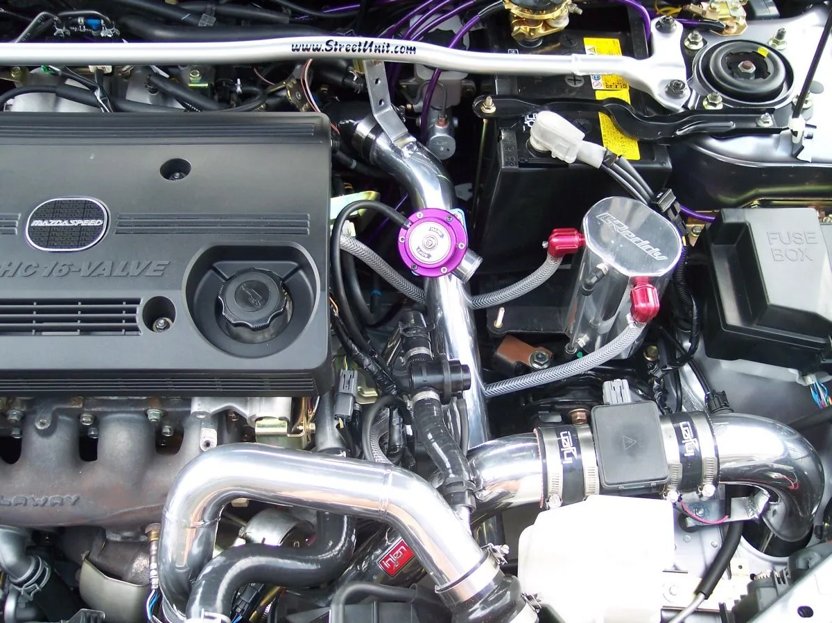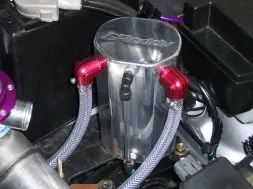 Besides engine dress up, the oil catch can collects oil, moisture, and crap that causes sludge and carbon build up in the engine and intake system. Over time you will see the inside on the can fill up, not right away. It is a product that will help the car in the long run.laracroft said:Here's mine at the bottom. It has 'mazdaspeed' engraved on the side which you can't see in the pic. I like it MUCH better than the plastic collant holder. Not sure why they call it a oil catch can cause it only catches coolant. lol You can see the collant passing through it.