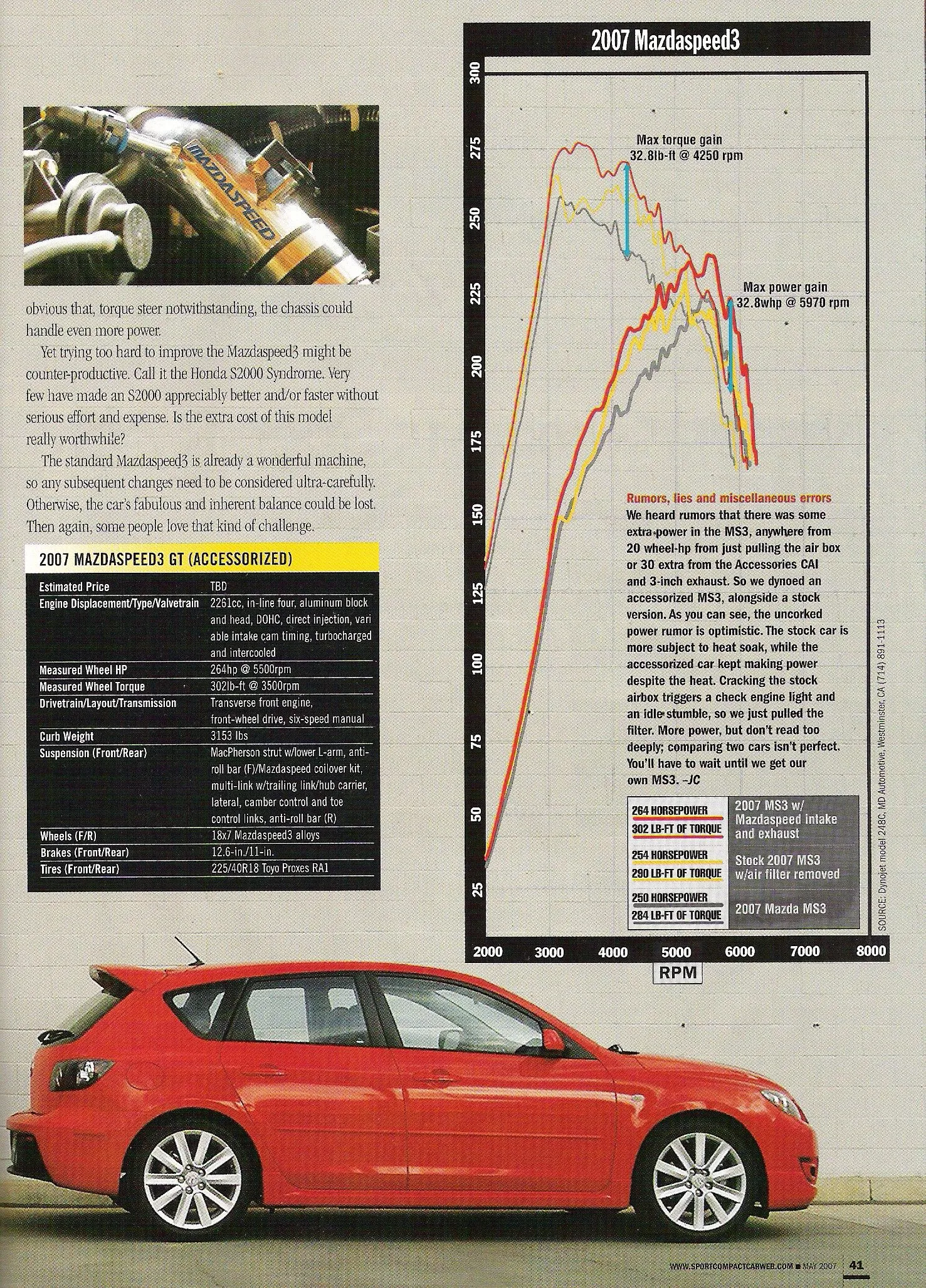 RogRacer said:I hate to say this....but there is something wrong with the data in the article. Look at the plot. The numbers do not agree with the claims in the summary boxes. I "think" what may have happened is that the plots are FWHP, while the summarized numbers (302 ft-lb, 264 hp) may have been "corrected" (by some unknown mechanism) back to the crank. (uhm)