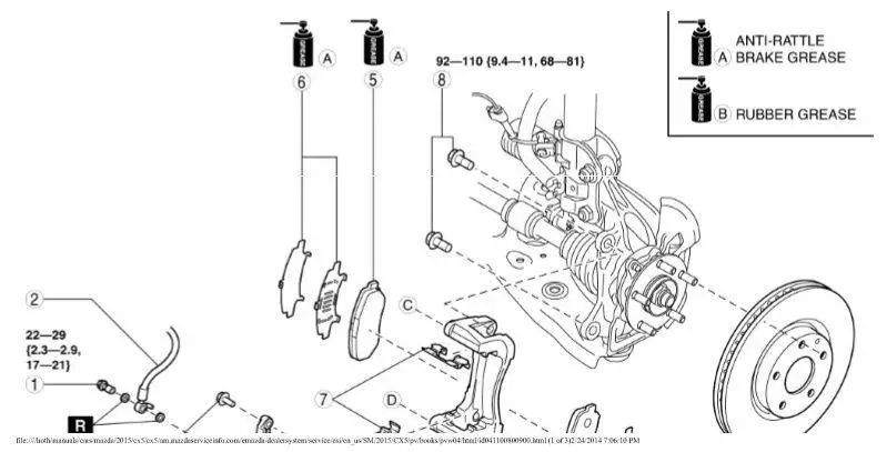 I had new pads on stand by but mine were 6mm and the new ones 9.5mm. They were made by Ferodo in my home town and have made their way to Hiroshima for building on to my CX-5! I checked all the edges for lift, cleaned out the groove and assembled the shims with clean ceratec grease.