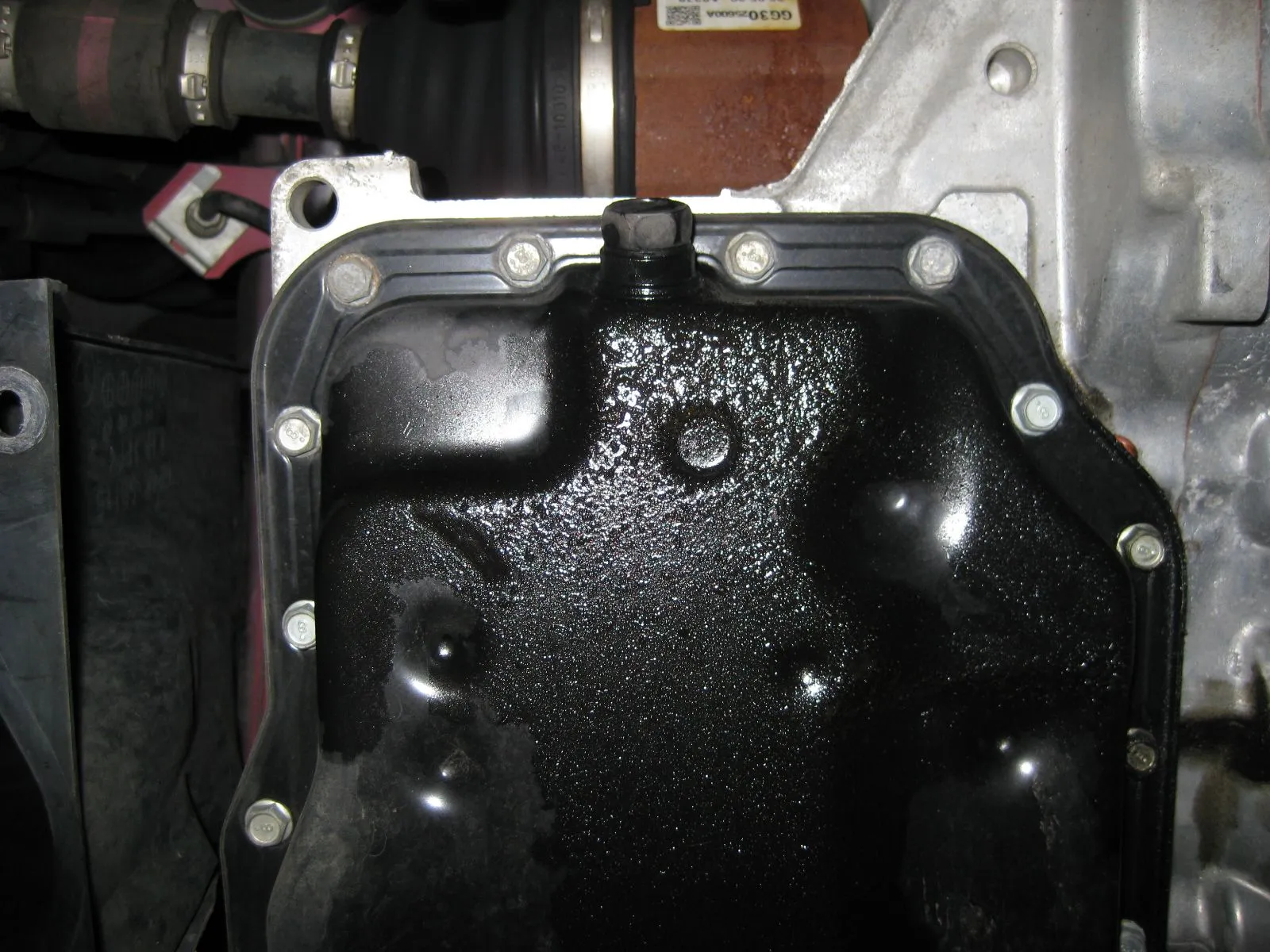 The last two times I changed my oil, I noticed some oil residue in the transmission oil pan (I think it is). I checked the auto trans dipstick and oil is in the right level. There's no oil residue dropping in the inside of the plastic cover either. I'm guessing this oil is leaking slowly. Anybody knows what is this or what's it causing it? Thanks.